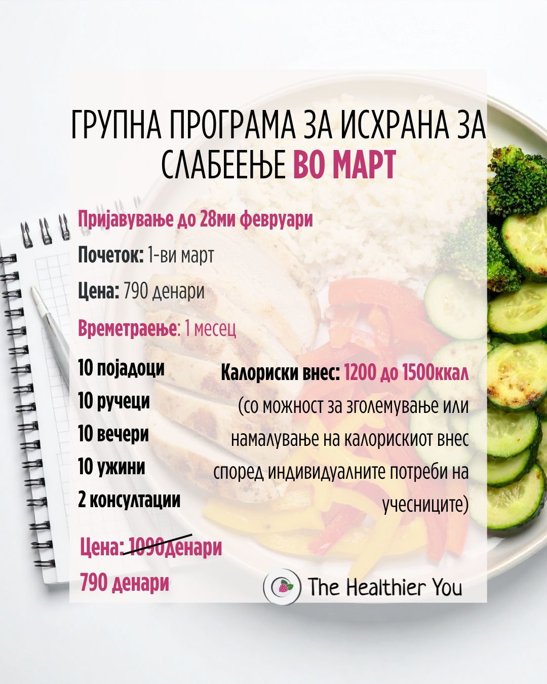 Оваа програма за исхрана трае 1 месец а ги содржи следните нешта: